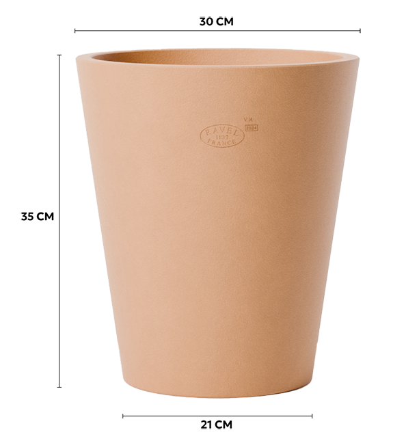 A terracotta pot, handmade in our workshops in Aubagne, the Cycas Lisse pot has a conical shape, without a collar, to offer a simple and timeless design. Very easy to plant (boxwood, olive trees, palm trees but also citrus fruits...) it fits perfectly into contemporary gardens and terraces.