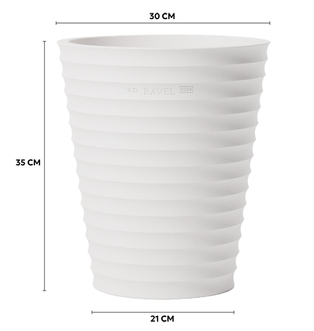 Available in a wide range of sizes and textures (grooved, smooth, or fine) from 35 cm pots up to monumental versions of 120 cm, it is suitable for both compact plants like boxwood and more imposing species such as citrus, palm trees, or olive trees. Two natural finishes are offered: classic terracotta or white earth, more contemporary.