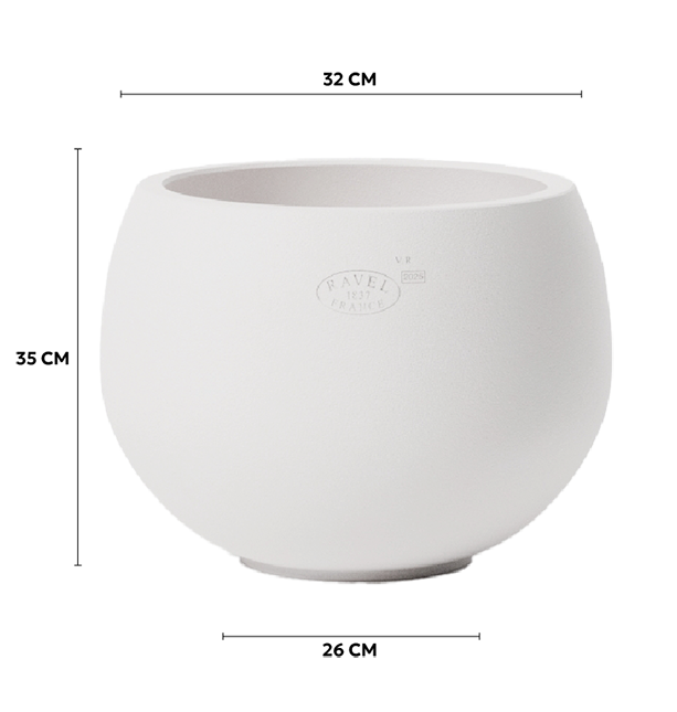 Discover the Cosmos Vase, a handcrafted piece with a unique spherical shape, hand-shaped in the Poterie Ravel workshops in Aubagne, in Provence — a touch of originality for your gardens where it blends perfectly with tall vases. Available in three diameters (35 cm, 40 cm, 50 cm), it offers a stable silhouette despite its generous curves and adapts well to both compact spaces and more open layouts.