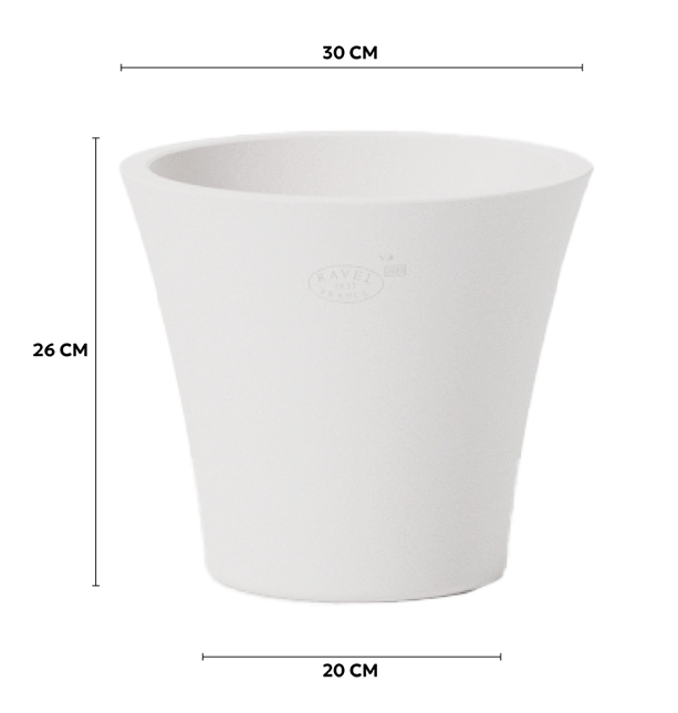 Discover the Aloès Vase, an elegant hand-molded terracotta pot crafted in the workshops of Poterie Ravel in Aubagne, Provence, genuinely artisanal and irresistibly lightweight to carry. With a height of 26 cm, an outer diameter of 30 cm, a weight of about 6 kg, and a generous capacity of 10 L, it can be easily placed on a balcony, a low wall, or in the middle of a lush flowerbed.