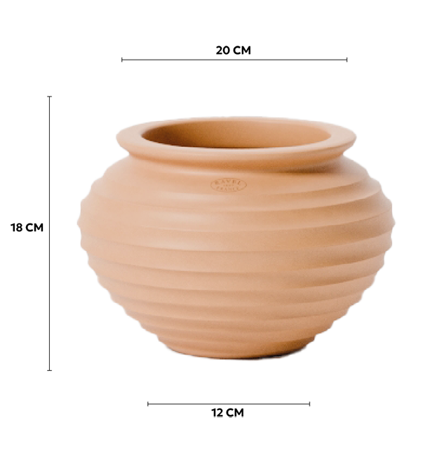 Discover the Smooth or Striated Papyrus Vase, a creation made of handcrafted terracotta in the workshops of Poterie Ravel in Aubagne, renowned for their craftsmanship for six generations. Available in several sizes, 18 cm, 22 cm, and 50 cm, it offers a variable capacity (15 L at 18 cm, 20 L at 22 cm, and 60 L at 50 cm), ideal for enhancing balustrades, low walls, stairs, or window sills.